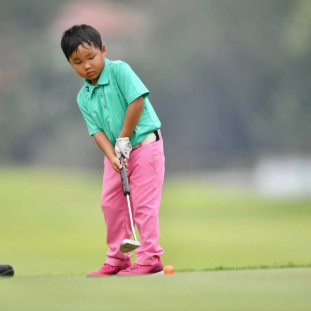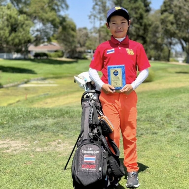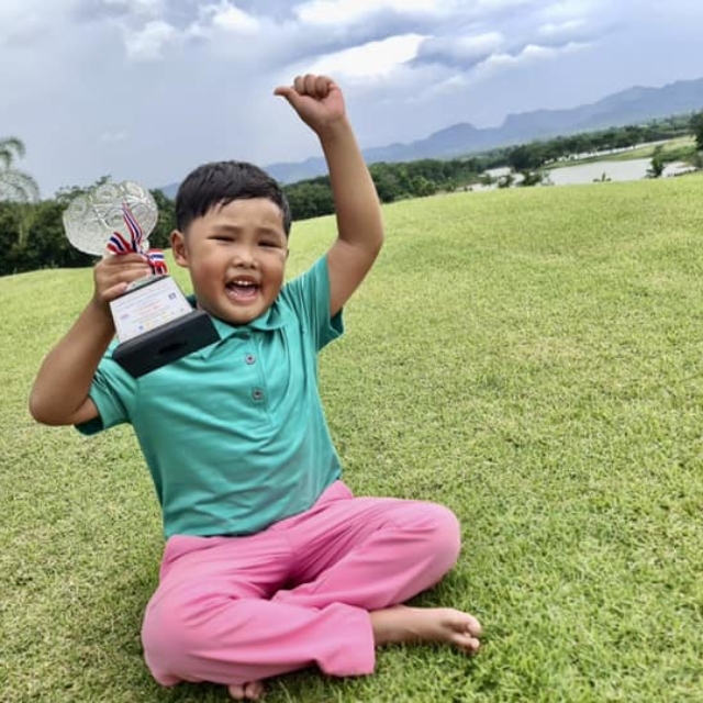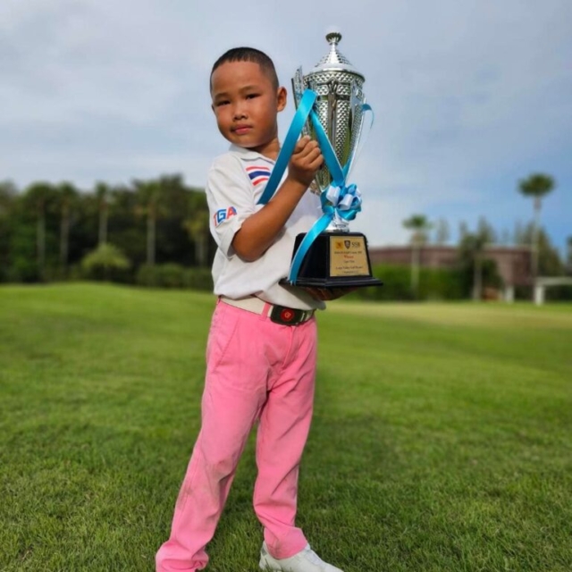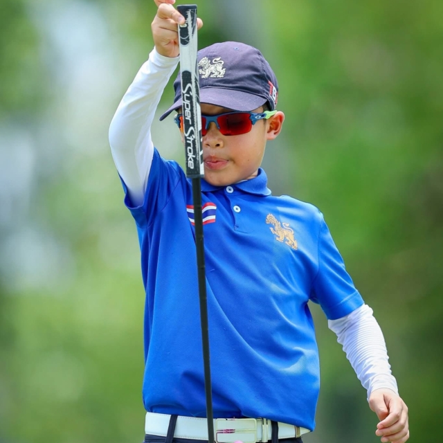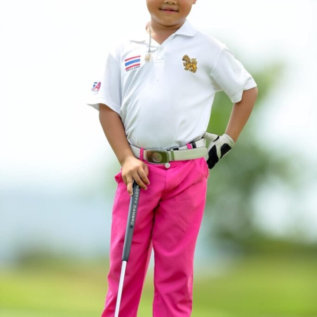 I started playing golf when I was 4 and a half. Before that, I was a Strider athlete, but once I tried golf, I loved it! I practice every day, both at home and on the course, playing nine holes a day. I’ve had the chance to compete in many tournaments in Thailand and abroad. One of my proudest achievements was finishing 4th in the world at the IMG Academy Junior World Golf Championships 2023 (Boys 6 & under).